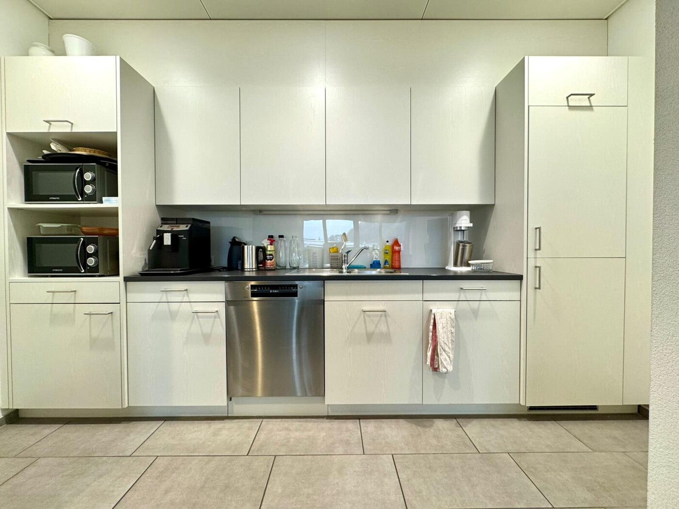 Zur Mitbenutzung: Empfang/Admin, Kaffeeküche, WC-Anlagen (Damen, Herren, Behinderten-WC), Terrasse (ca. 50 m²), Treppenhaus und Lift.